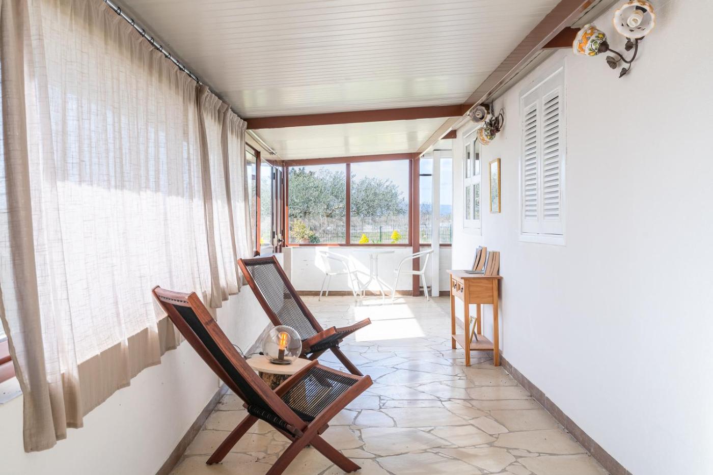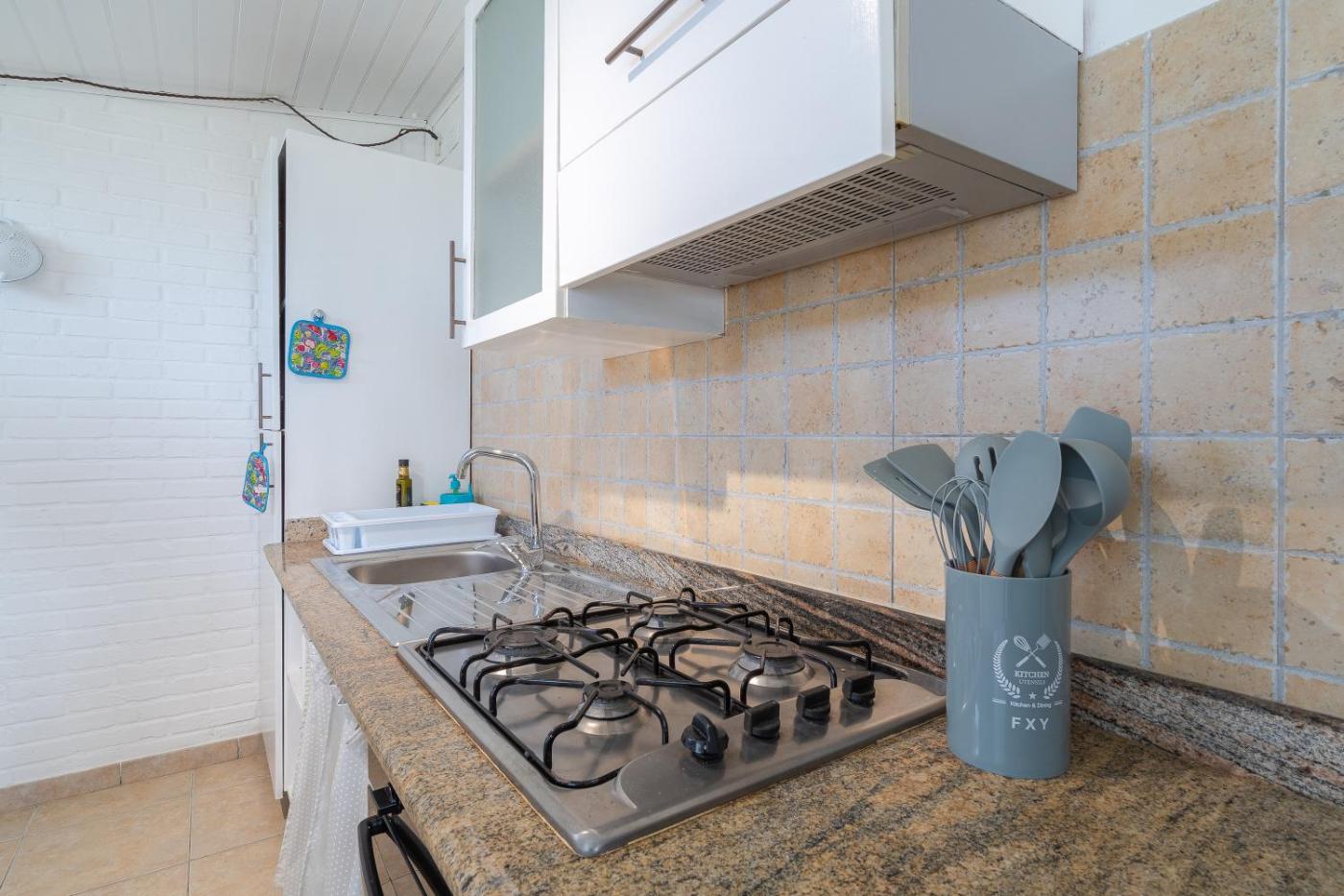 Questa casa vacanze prevede 3 camere da letto, 1 bagno, lenzuola, asciugamani, una TV, una cucina con utensili e una terrazza con la vista sul giardino.