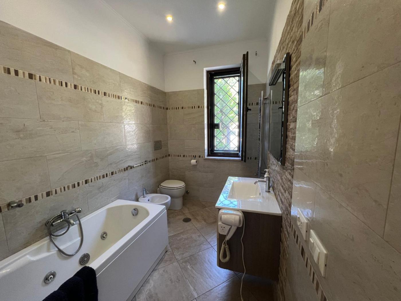 Appartamento con 2 Camere da Letto. The hot tub and spa bath are the standout features of this apartment. Boasting a private entrance, this spacious apartment also comes with 2 separate bedrooms and 1 bathroom with a bidet and a hairdryer. Meals can be prepared in the kitchenette, which features a stovetop, a refrigerator and a microwave. This apartment is air-conditioned and has a flat-screen TV, a washing machine, a sofa and heating. The unit has 3 beds.